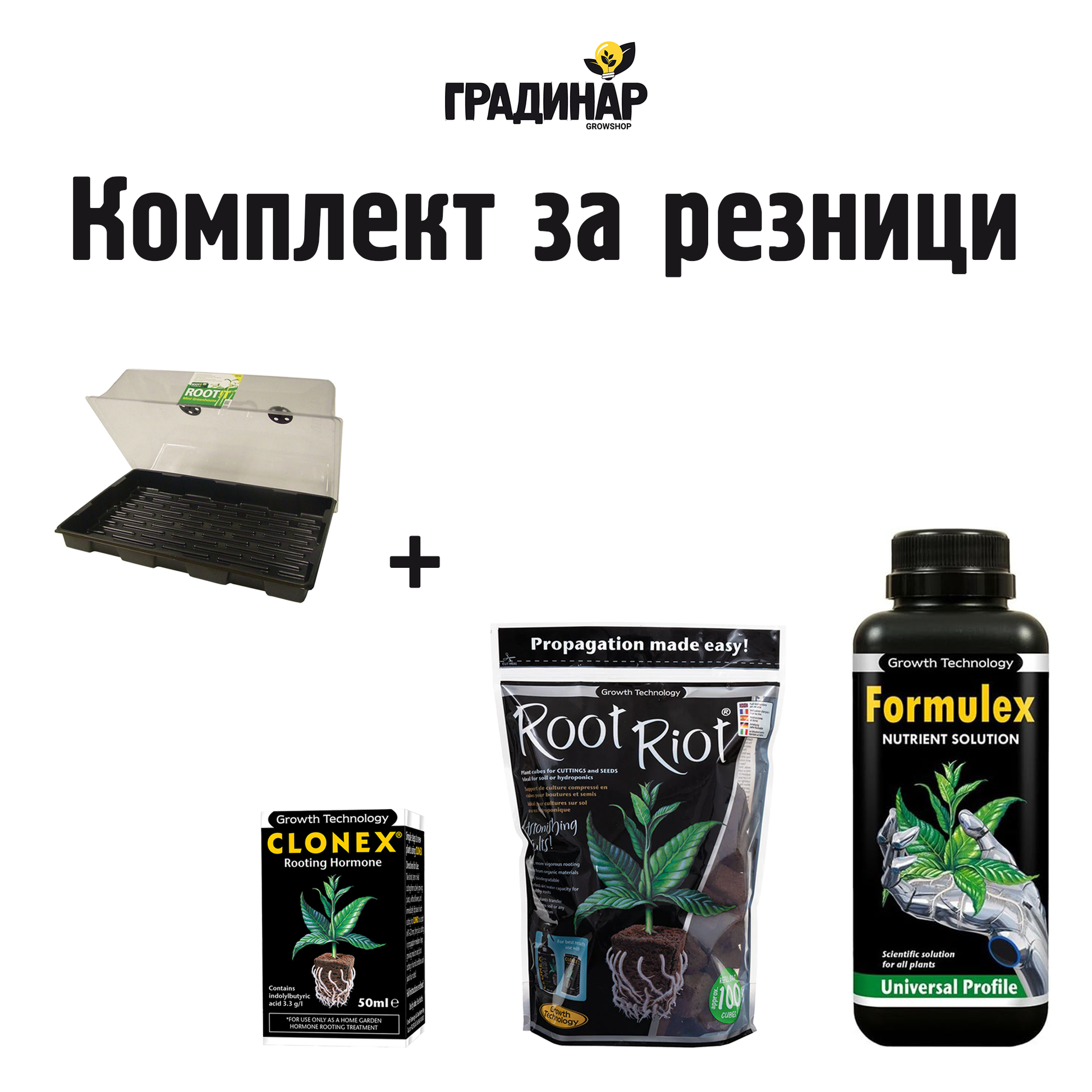 Комплект за резници Root Riot, Clonex, Formulex + пропагатор