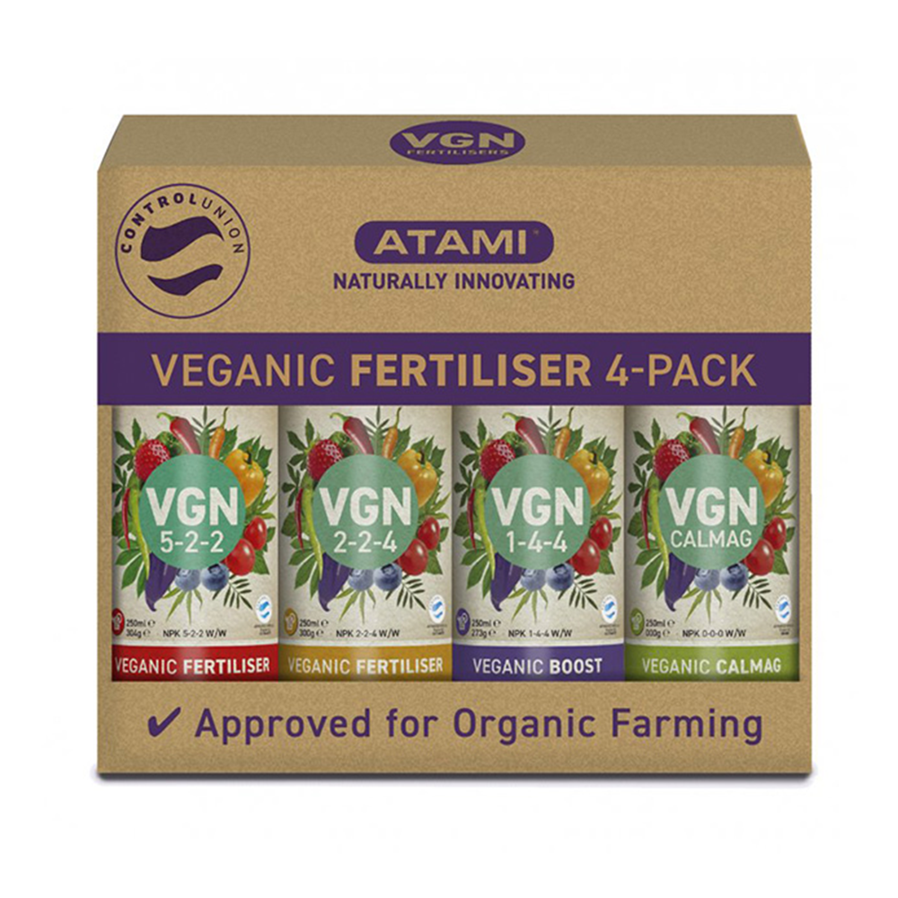Atami VGN е комплект от висококачествени веган течни торове, разработени с цел да осигурят цялостно хранене за растения, отглеждани в почва и почвени субстрати.