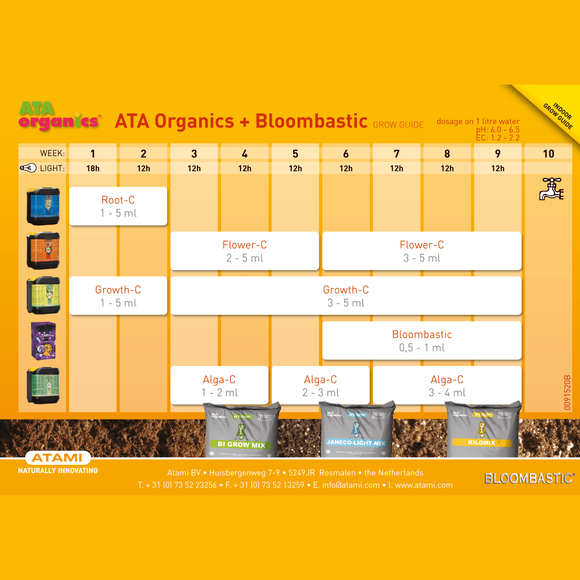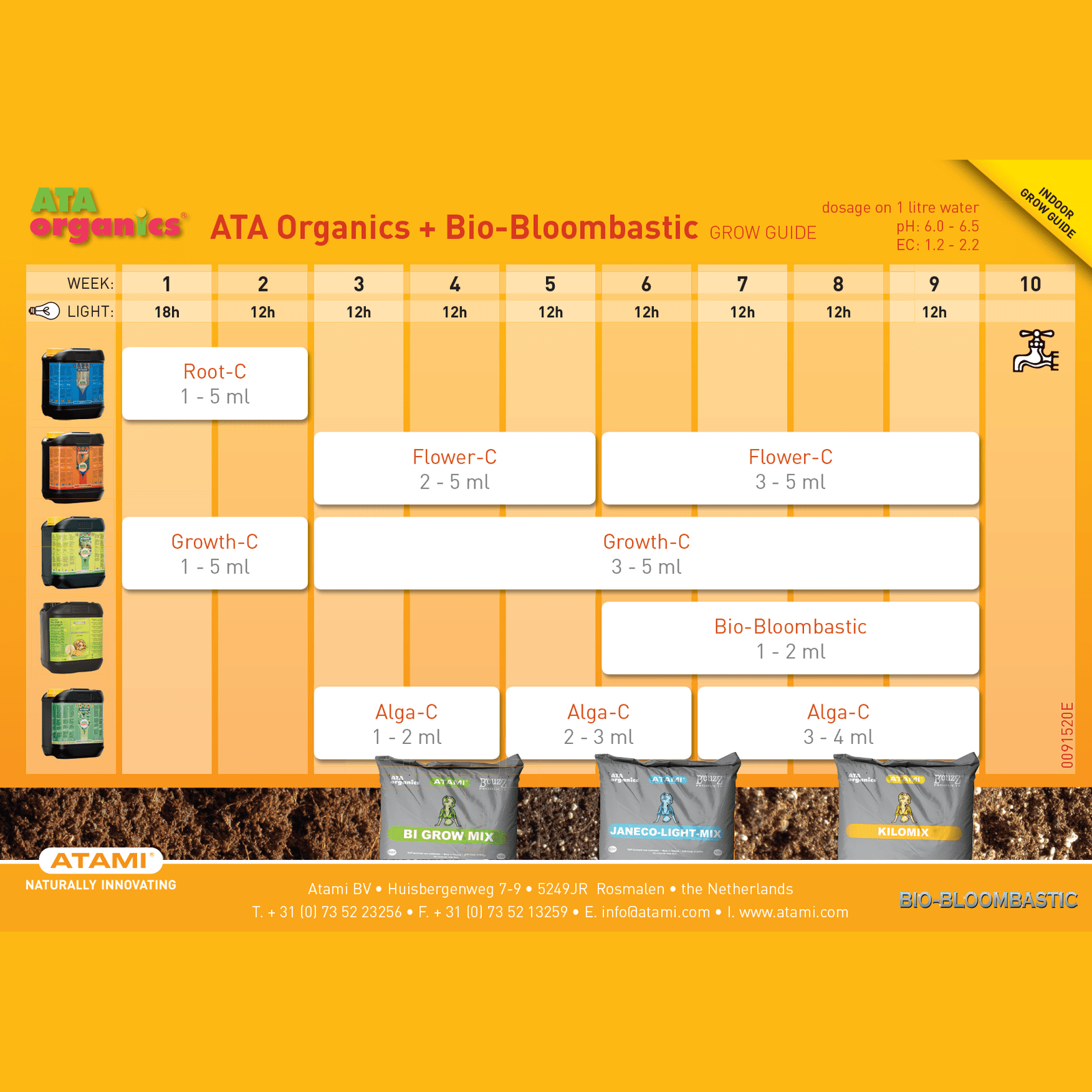 В ерата, в която всеки растениевъд гледа внимателно екологичния аспект, тази серия продукти е разработена за съвестните към природата растениевъди, които зорко следят вкуса и мириса на крайния си продукт. Този течен органичен тор е разработен за плодообразуващия период. Има силно влияние върху реколтата и съдържа множество ключови съставки като водорасли и екстракти от морски растения. Това го прави много добро подхранване за формирането на разклоненията и цветовете. В Bloom-C не се съдържат само водорасли и екстракти от морски растения, а и изобилие от аминокиселини, микроелементи, витамини, ензими и натурални растителни хормони.