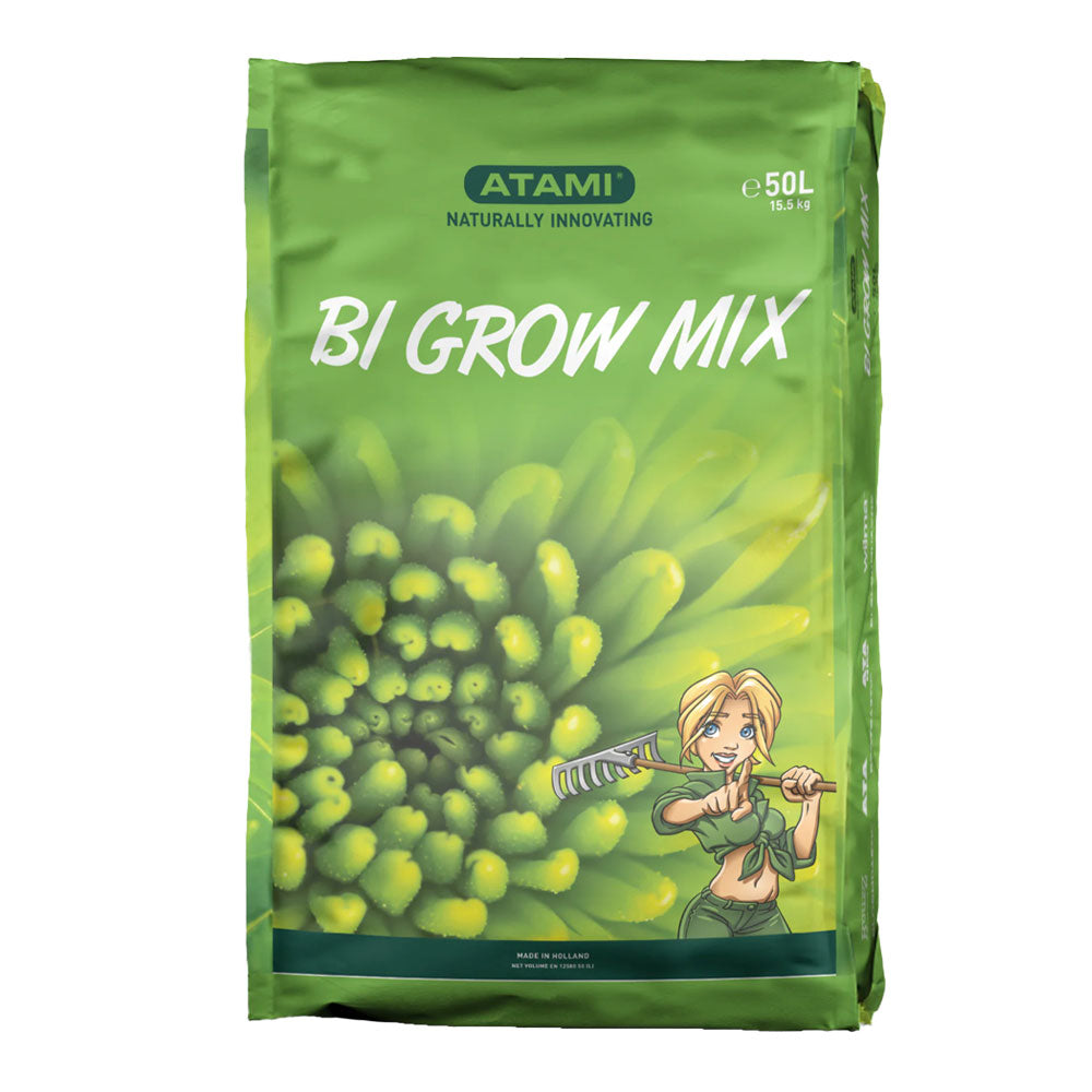 Създава перфектна основа за успешен растеж. Растенията започват да образуват коренова система от момента на пресаждане или покълване и след това се развиват допълнително на размер. Що се отнася до количеството и съотношението на изкуствените торове, този субстрат може да се счита за балансиран. Това, което имаме предвид е, че хранителни вещества подходящи за първите 2-3 седмици от живота на растението са добавени в Bi Growmix. След този начален период (в зависимост от броя на растенията и размера на съда) Atami препоръчва да се добави течен обогатител към насажденията за оптимални резултати.