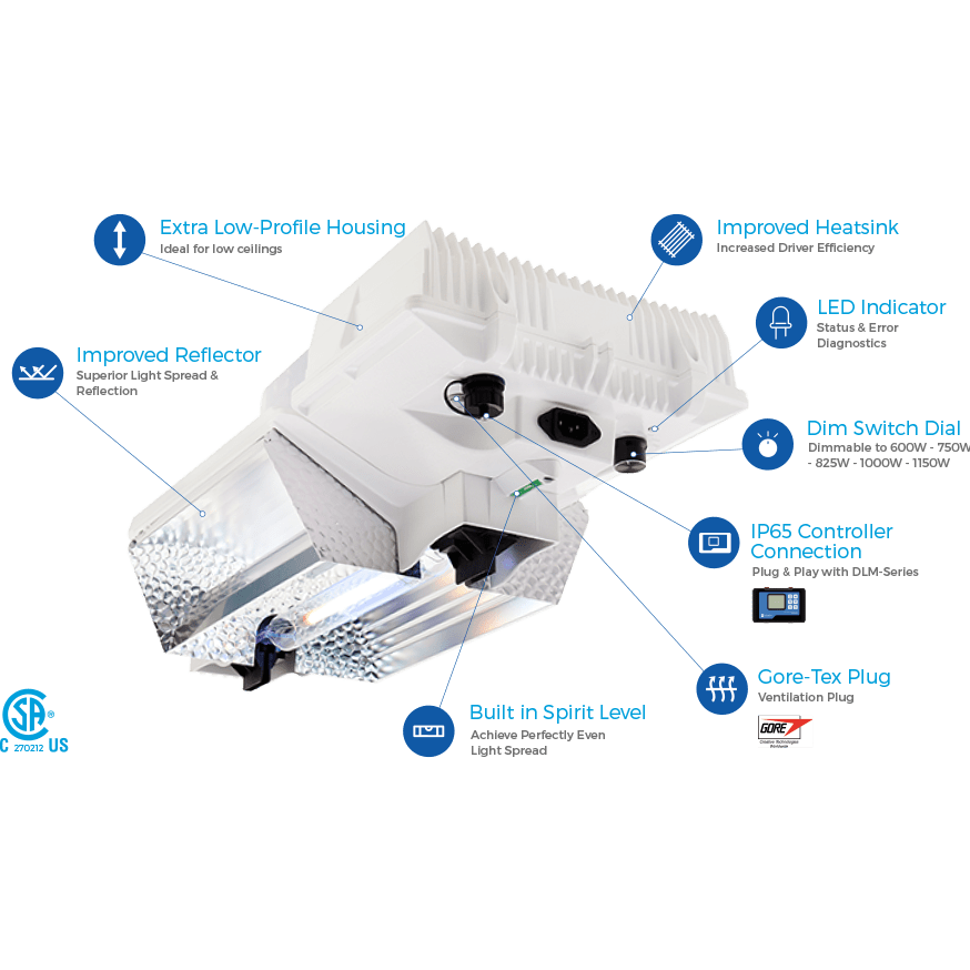 Цялостно приспособление DLI Joule 1000W DE димируемо привлича основно със следните характеристики и параметри:
