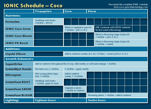 Изследванията на Growth Technology включват всички ключови елементи и ги комбинират в еднокомпонентна концентрирана растителна храна. Най-важното е, че растителната храна IONIC Coco е стабилна в разтвор и доставя нужните хранителни вещества на растението в правилно съотношение. Продукта е pH-стабилен, което дава на растениевъда лесен контрол над хранителния разтвор.